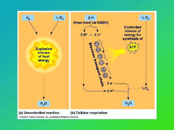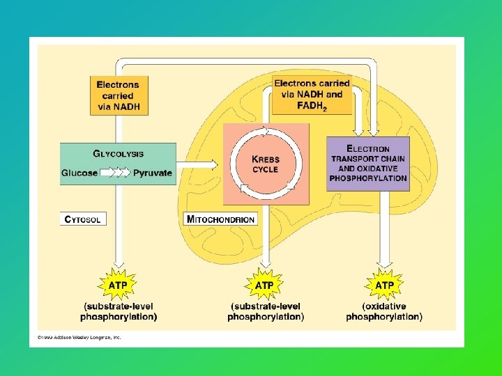 • Respiration uses an electron chain to break the “fall” of electrons to several steps. • Oxidation phosphorylation (adding a phosphate onto a compound in the presence of oxygen) accounts for 90% of the ATP generated by respiration.