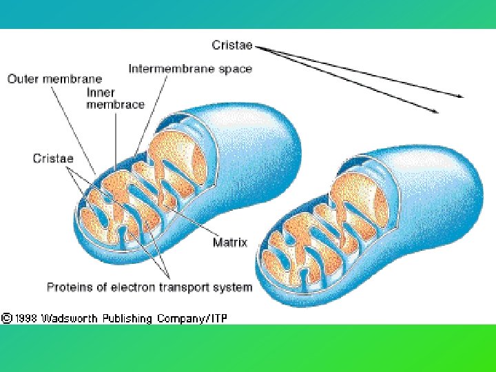 Mitochondria: Site of Electron Transport Chain The Mitochondria have 2 layers/two membranes • the outer membrane • inner membrane which has many folds. • these folds are called Cristae • The purpose of the cristae is to increase surface area, they hold the ATP synthase (which puts the ATP together • More ATP synthase more ATP The H+ which are brought to mitochondria accumulate between these two membranes.