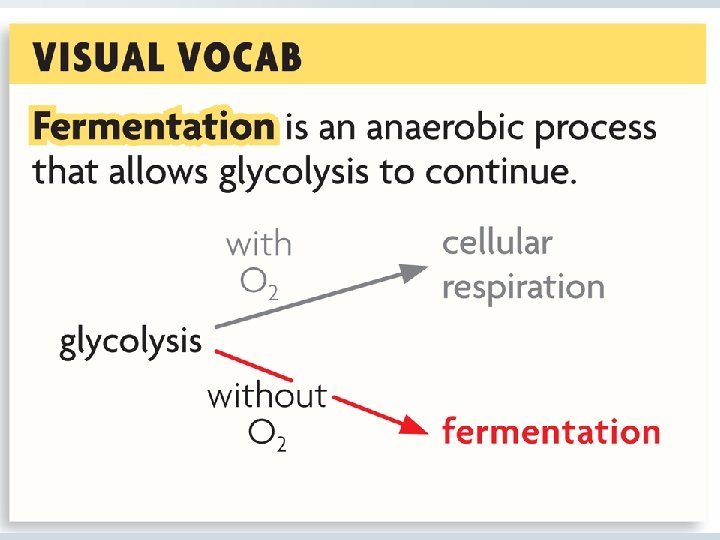 Glycolysis (cont) - products (pyruvate and NADH) enter either cellular respiration or fermentation - Efficiency = 3. 5 % (only 2 ATP are made)