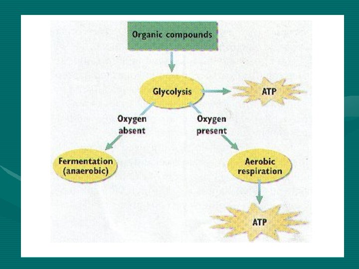 GRAND TOTAL= 36 ATP!! • 2 are produced in Glycolysis and 34 in Respiration/ Kreb’s Cycle – 18 times more ATP are produced in the presence of Oxygen!!