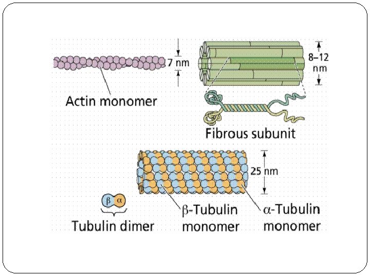 CITOESQUELETO El citoesqueleto tiene por función estabilizar la estructura de la celula, organizar el citoplasma con todos sus organelos y producir movimiento. Formado por tres tipos de filamentos proteícos principalmente: Filamentos de Actina Microtúbulos Filamentos intermedios