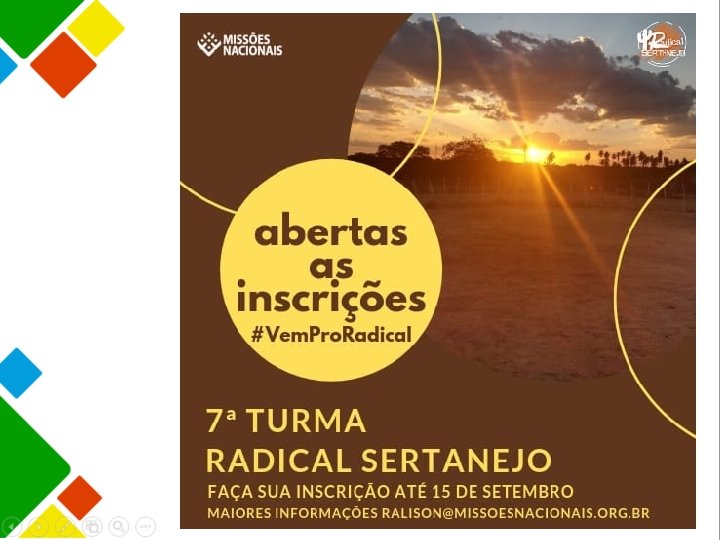 REQUISITOS PARA SER UM RADICAL SERTANEJO • Ser jovem entre 18 e 40 anos de idade. (solteiros ou casados sem filhos); • Ter, no mínimo, o 1º grau completo (ensino fundamental); • Ser membro de uma igreja batista há dois anos; • Ter disposição para levar uma vida simples e sem os confortos da cidade; • Ter boa saúde física, emocional e espiritual; • Ter amor pelo povo Sertanejo; • Custo Mensal de R$ 1. 200, 00 reais.
