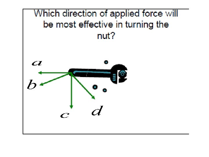 Rate the forces using scale 1 -3 according to their effectiveness in turning the nut? (1 -most effective, 3 - least effective).