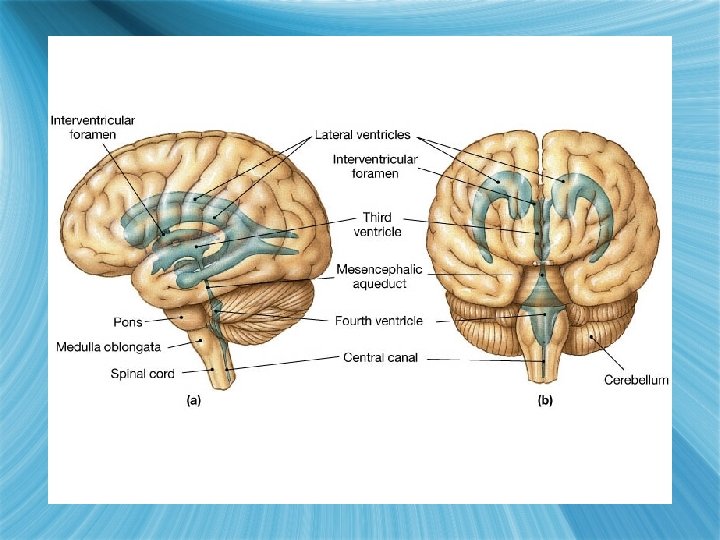 s The central passageway of the brain expands to form four chambers called ventricles. s CSF continuously circulates from the ventricles and central canal of the spinal cord into the subarachnoid space of the meninges that surround the CNS