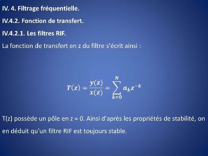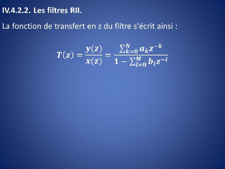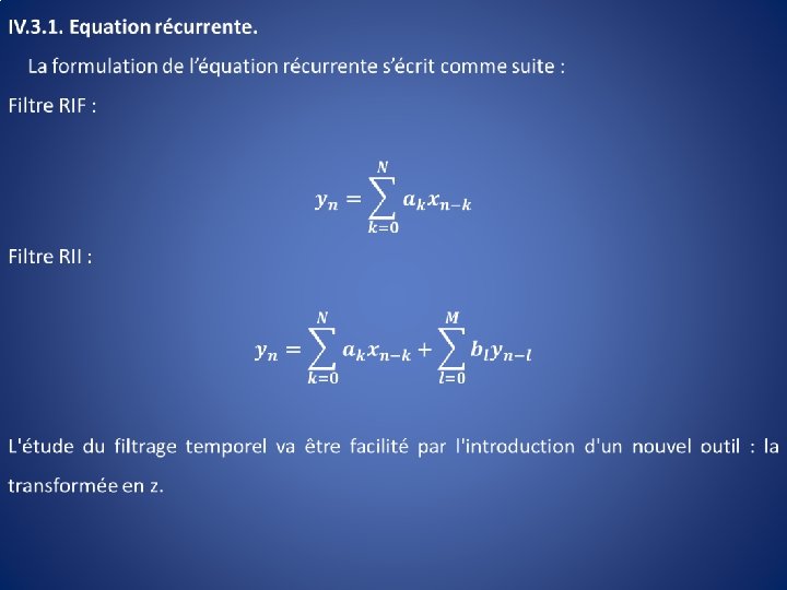 IV. 3. Filtrage temporel. On appelle ici filtrage temporel, un filtre qui agit directement sur le signal d'entrée par une équation récurrente (combinaison linéaire des échantillons d'entrée xn et de sortie yn).