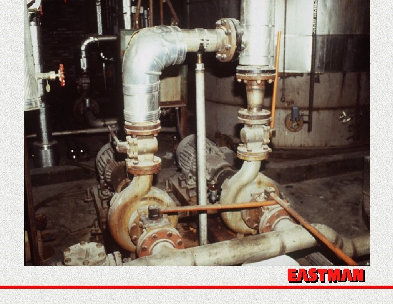 Conclusions Avoid Max Size Impellers Keep speed to 1750 max Keep flow in design range Grout your baseplates Use proper piping EASTMAN