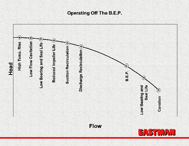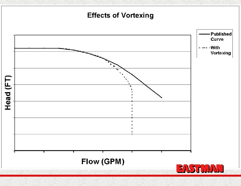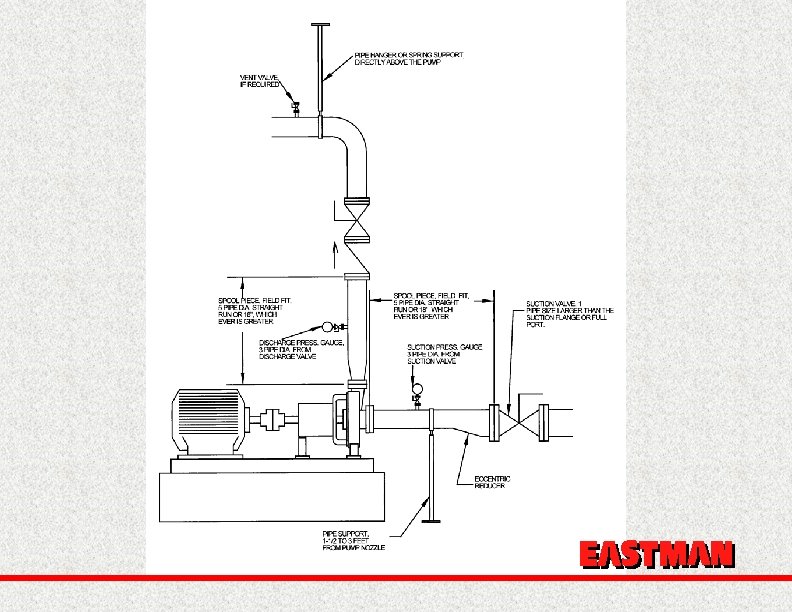 Conclusions Avoid Max Size Impellers Keep speed to 1750 max Keep flow in design range Grout your baseplates Use proper piping Avoid hydraulically induced problems like cavitation, and suction and discharge re-circulation, submergence. EASTMAN