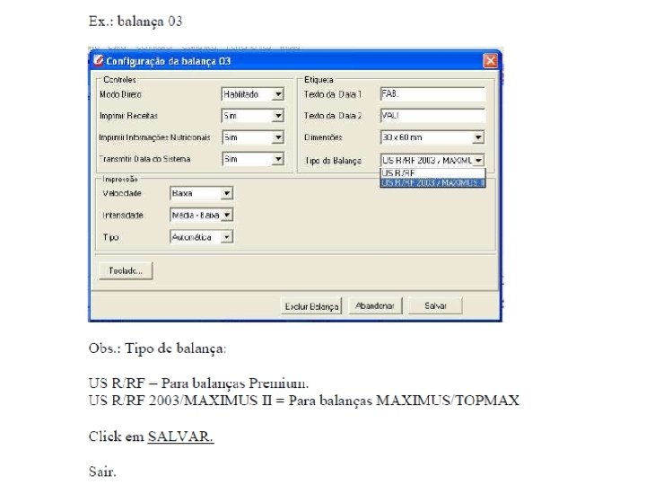 BALANÇAS MÁXIMUS | TOPMAX PRINCIPAIS CARACTERÍSTICAS • Capacidades: 15 Kg e 30 Kg com dvisão de 2 g • Comunicação em RS 232, RS 485, Rádio Freqüência ou TCP/IP gerenciado por aplicativo de gerenciamento. (URF 32) • Fonte Chaveada e nobreak de 90 a 240 VCA. Com sistema inteligente de recarga da bateria para autonomia de 8 horas e capacidade de 500 etiquetas de impressão. • Consumo mínimo 10 Watts e máximo 50 Watts. • Dispositivo impressor embutido e de fácil substituição. • Display LCD e Coluna com backlight. • Tara equivalente á capacidade máxima da balança • Dois modos de operação: Direto ou via código. • Capa protetora de PVC para o teclado • Teclado alfanumérico com substituição prevista pelo operador. • Teclado numérico rebatível podendo ser espelhado em caso de defeito (transposto) • Cadastro de Fornecedores, descrições, receitas e informações nutricionais e publicitárias. • 78 produtos com acesso rápido. • Impressor gráfico, térmico 203 DPI com Velocidade e Densidade de impressões programáveis pelo operador • Opera em modo Empacotado ou para geração de códigos de barras padrão EAN 13