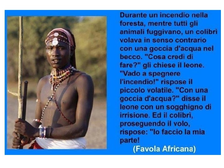 Il riso e le bacchette – Fiaba cinese «Un mandarino cinese, venuto a morte, mentre s’avviava al paradiso, ebbe voglia di visitare l’inferno. Fu accontentato e condotto al soggiorno dei dannati. Si trovò così in un’aula immensa, con tavole imbandite, su cui fumava, profumando l’aria, il cibo nazionale in enormi vassoi: il riso, il diletto e benedetto riso. Attorno alle tavole sedevano innumerevoli persone, ciascuna munita di bacchette di bambù per portare il riso alla bocca. Ogni bacchetta era lunga due metri e doveva essere impugnata a una estremità. Ma, data la lunghezza della bacchetta, i commensali, per quanto si affannassero, non riuscivano a portare il cibo alla bocca. Colpito da quello spettacolo di fame nell’abbondanza, il mandarino proseguì il suo cammino verso il soggiorno dei beati. Ma quale non fu la sua sorpresa nel constatare che il paradiso si presentava identico all’inferno: un ampio locale con tavole imbandite, vassoi enormi di riso fumante, da mangiarsi con bacchette di bambù lunghe due metri, impugnate a una estremità. L’unica differenza stava nel fatto che ciascun commensale, anziché imboccare se stesso, dava da mangiare al commensale di fronte, dimodoché tutti avevano modo di nutrirsi con piena soddisfazione e serenità. »