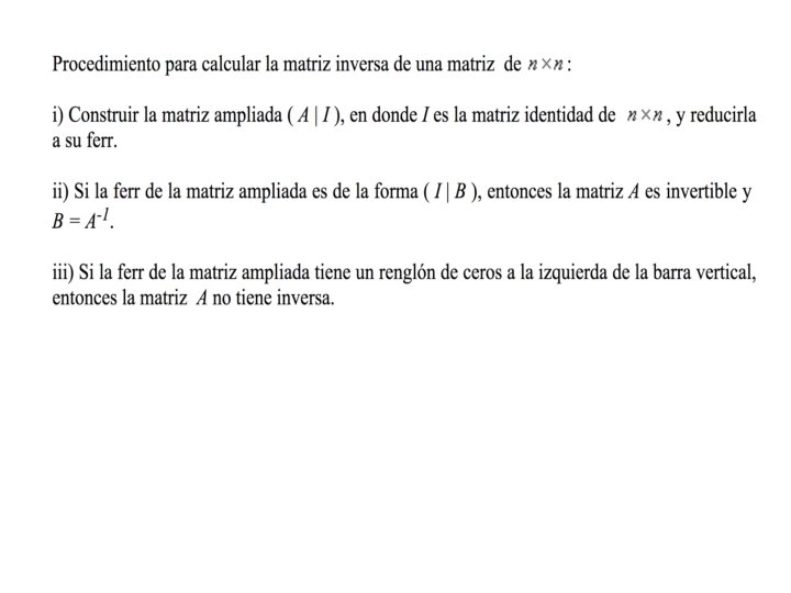 REFERENCIAS • Baldor, Aurelio, (segunda reimpresión 2009) Álgebra Editorial Grupo Editorial Patria. Software Geogebra. • Haeussler, Ernest F. y otros (2012) Matemáticas para Administración y Economía, 12 va. Ed. Pearson-Prentice Hall. • Harshbarger. Ronald J y otros (2010) Matemáticas aplicadas a la Administración, Economía y Ciencias Sociales. Editorial, Mc. Graw Hill, México • Ibáñez C. Patricia y otro. (2009) Matemáticas I Aritmética y Algebra Cengage Learning. • Lehman. (2001) Álgebra de Charles Editorial Limusa. • http: //fcm. ens. uabc. mx/~matematicas/algebralineal/II%20 Matrices/matin v. htm • https: //www. ditutor. com/matrices/operciones_matrices. html • https: //www. varsitytutors. com/hotmath_help/spanish/topics/id entity-matrix • https: //www. vitutor. com/algebra/matrices/i_e 3. html
