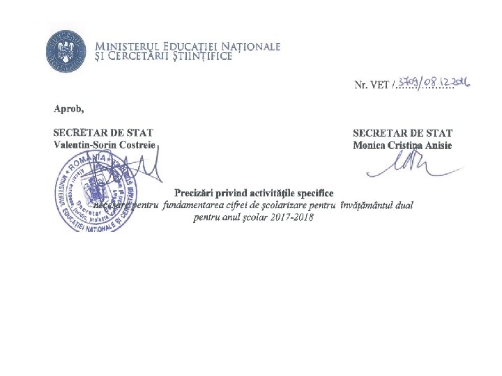 Calendarul activităților specifice pentru stabilirea cifrei de școlarizare învățământul dual - anul școlar 2017 -2018