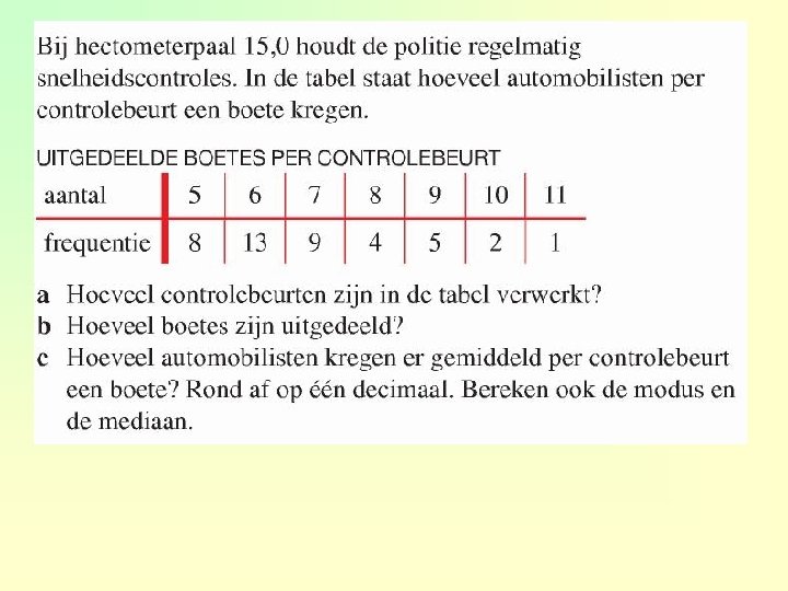 Voorbeeld opgave m. b. t. Centrum maten omvang gezin frequentie 2 3 3 7 4 9 5 5 6 3 7 1