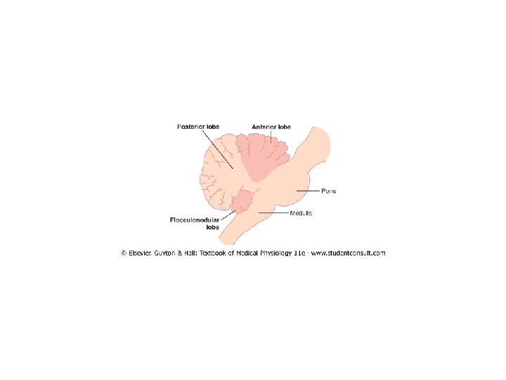 Functional regions of cerebellum Cerebrocerebellum (hemispheres): coordination of voluntary movements, cognitive role? Spinocerebellum & Vestibulocerebellum (midline): posture and balance, eye movements Purves, 18 -5