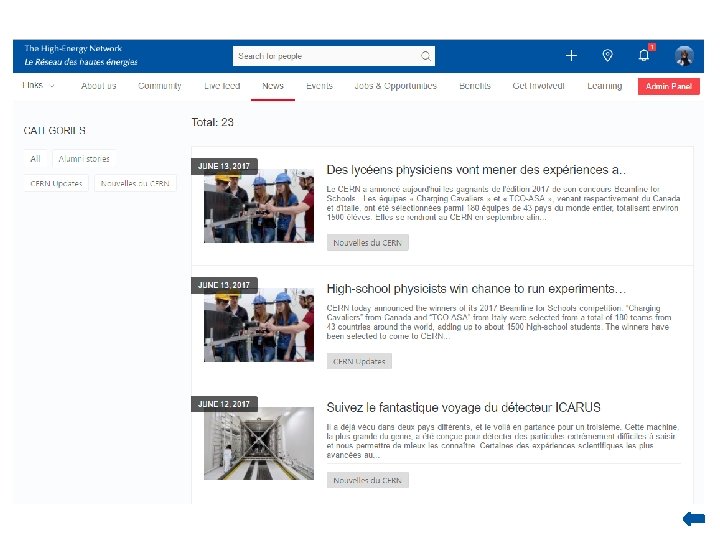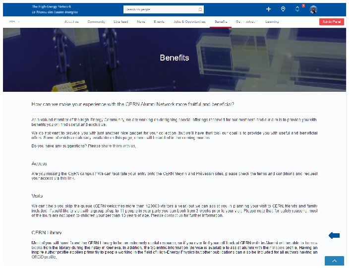 Launched on 8 June 2017 An inclusive alumni community A network which supports the: • • • “I want to stay connected” • “I want to support” • “I want to be engaged” • • The offer: A comprehensive directory in a secure environment • CERN information hub with living content • Career opportunities Professional development • Alumni events • Benefits Best practice governance