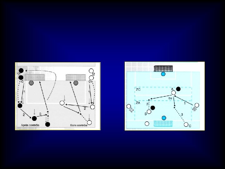 3 - Pour la préparation physique « contextualisée » , prévoir et organiser : - l’impact recherché (PMA, répétition de sprints, capacité lactique ? . . . ) - les surfaces de jeu : diviser le terrain 2 ½, 4 ¼, surfaces de but, carré des corners, losanges central…. en fonction du nombre de joueurs et de l’impact recherché, - les durées et les formes de jeu : continues ou intermittentes, - le nombre de joueurs 2 c 2, 3 c 3, 4 c 4, 5 c 5, …avec 1, 2 ou sans gardien de but… - le thème du jeu, le point de départ, le déroulement attendu, l’impact recherché…