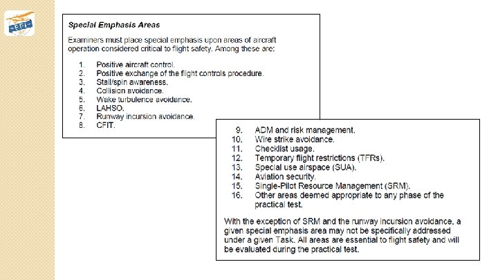 STANDARDS FAA Practical Test Standards Duration = Approx. 5 -15 mins Criteria = Material derived from FAA Airplane Flying Handbook at minimum