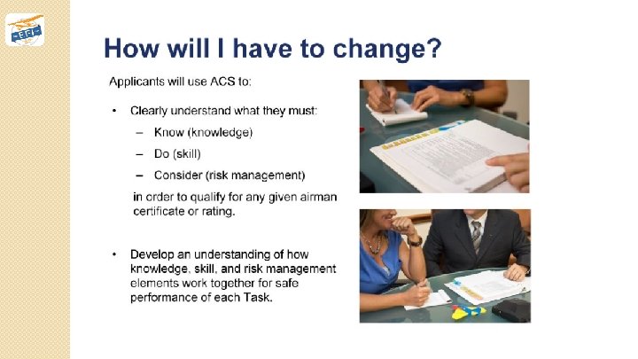 • The industry working group expects to start sharing the draft instructor ACS for review and comment during the first half of 2016.