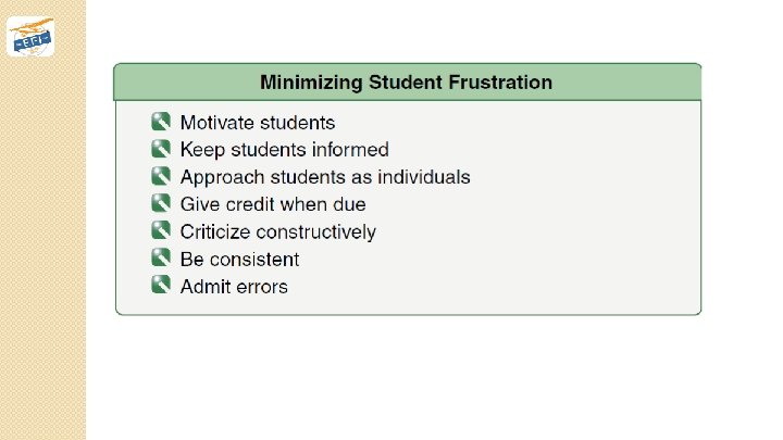 Emphasizing the positive ü Hold high standards for yourself ü Diverge from negativity Consider when an instructor is discussing poor performance of a student in the FBO……