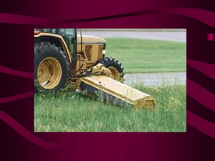 Appropriate Equipment Mowers • Mowing = main cultural practice of turf management • Mowing causes significant stress on turf • Need quality well-maintained equipment • Cutting height for the variety/use of grass/climate • Appropriate mowing schedule • Depth of the root system is related to the height of the grass