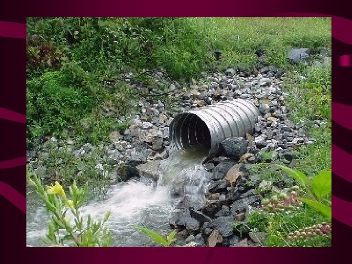 Drain Outlet Locations 2 types of outlets for subsurface drains: • 1. Gravity – most common for landscape purposes; discharge water into storm sewers or open waterways • 2. Pump