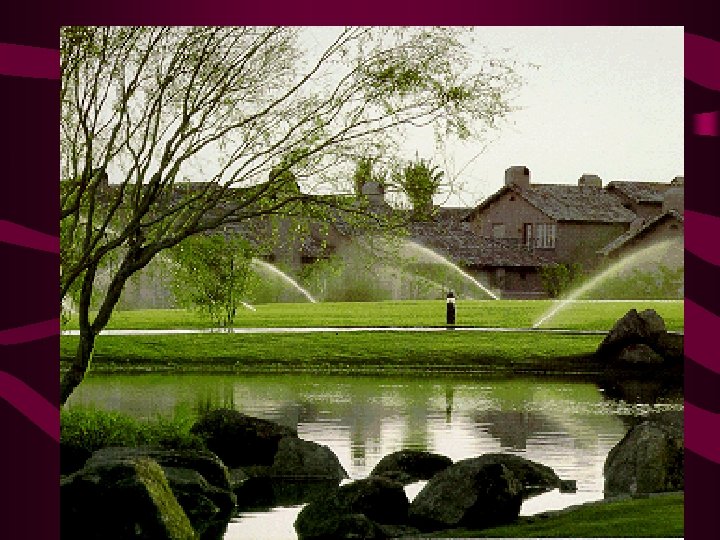 Water Requirements • Warm weather and cool weather grasses grow and go dormant at different times of the year = different irrigation needs • Soil type and quality/ plant needs/climate dictates program