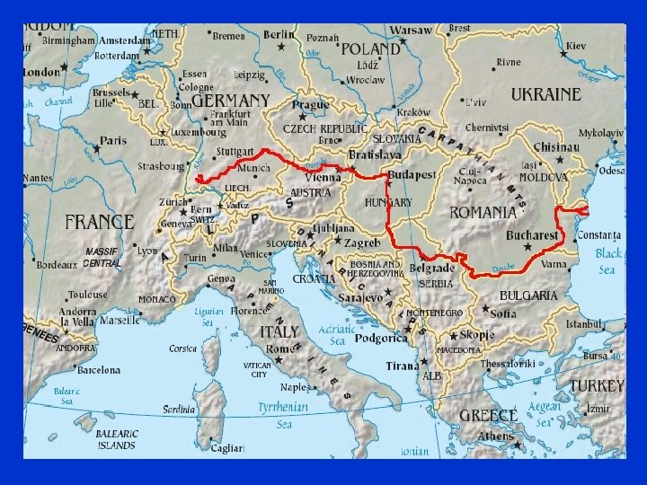 Mezi kterými státy tvoří Dunaj přírodní hranici? 1. 2. 3. Slovensko a Maďarsko, Bulharsko a Rumunsko, Rumunsko a Ukrajina.