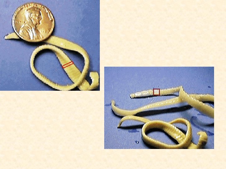 Taenia taeniformis • En intestino delgado de gatos, zorros y otros carnívoros. • Mide de 50 -60 cm de largo. • Proglótidos en forma de campana.