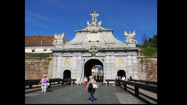Poarta I In cadrul ansamblului de fortificaţii militare defensive ale Cetăţii, Poarta I este situată la partea de jos a barbacanei ce leagă Poarta I de Poarta a II-a, în dreptul Bastionului “Sf. Capistrano”. Poarta este construită din blocuri de piatră cioplită, respectiv calcar din cariera de la Ighiu. Decoraţia sculpturală îmbogăţeşte semnificaţiile estetice ale porții dând monumentului distincţie şi personalitate. Dacă privim din faţă monumentul, la intrarea în Cetate, sus, pe arhitravă găsim în partea stângă statuia lui Venus – zeița frumuseții, în mijloc stema Austriei – Pajura imperială bicefală încoronată, iar în partea dreaptă statuia lui Marte – zeul războiului. Deasupra arcadelor laterale găsim patru altoreliefuri deosebite, cu teme mitologice, care personifică, în faţă pe partea stângă, pe Enea – întemeietorul mitic al Romei, iar în partea dreaptă pe Hercule, luptându-se cu Anteu. Pe faţada din spate îl găsim pe partea stângă pe Hercule ucigând leul din Nemeea, iar pe partea dreaptă pe Perseu cu capul retezat al Meduzei. În ansamblul lui, monumentul este realizat în stilul Baroc cu tema iconografică inspirată din iconologia antică şi s-a dorit a fi un simbol al puterii Habsurgice în Transilvania. Pe toată perioada asediului Cetăţii din anul 1849 (singura dată când Cetatea a fost asediată) accesul prin Poarta I a fost blocat, poarta fiind închisă permanent iar podul mobil ridicat şi asigurat.