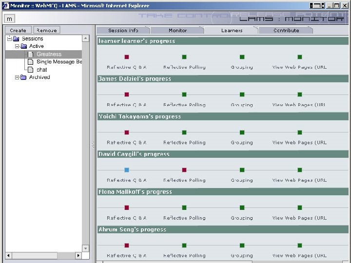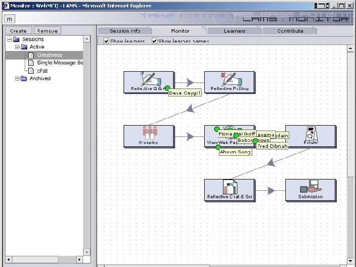 LAMS Trials • Trial groups in K-12 schools and universities – FE to begin soon – Groups in Australia, UK and North America • Some initial feedback: – Very positive! (both students and teachers) – Ease of authoring - makes pedagogy issues central – Differences between synchronous and asynchronous use – Student willingness to answer questions (f 2 f vs online) – Classroom facilitation experiences (co-ordinate vs mentor)
