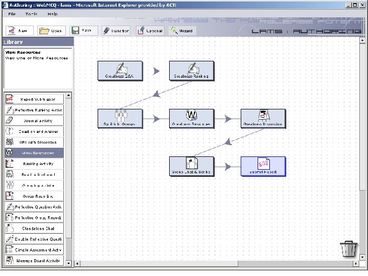 LAMS Examples - Authoring View • What is Greatness? – Long version • LT Scotland: Ticket to space Week 2 • LT Scotland/IMS LD: Versailles role play