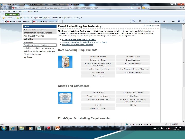 Food Labelling • It is the responsibility of all regulated parties to comply with the Food and Drugs Act (FDA) and the Consumer Packaging and Labelling Act (CPLA). Food labelling enable consumers to make informed food choices based on information that is truthful and not misleading. • CFIA has an Online Labelling Tool - Food Labelling for Industry to learn about food labelling requirements in Canada: • http: //www. inspection. gc. ca/food/labelling/food-labelling-for -industry/eng/1383607266489/1383607344939