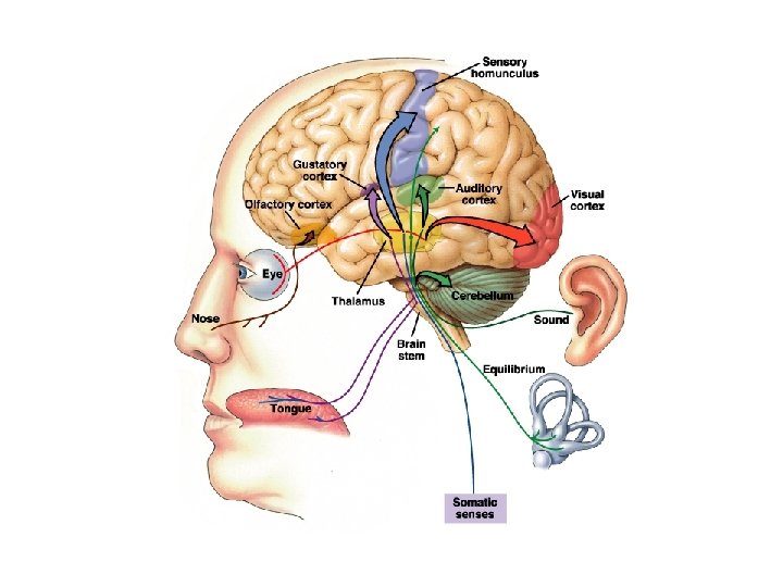 Types of conscious stimuli • Special senses: vision, hearing, taste, smell, equilibrium • Somatic senses: touch-pressure, temperature, pain, proprioception (make us aware of body position)