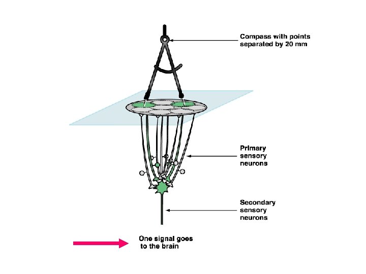 Receptive fields • Each receptor picks up information from a specific area • Sensory neurons converge on second order neurons, etc.