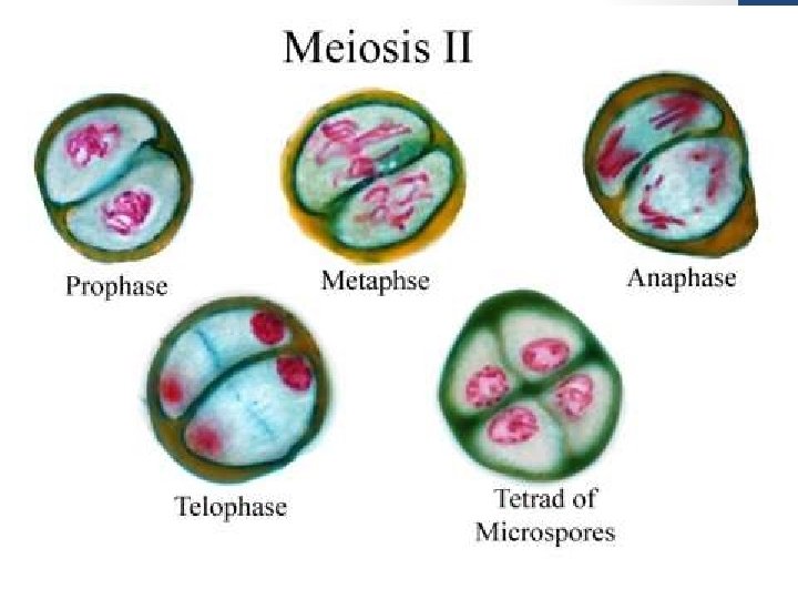 • Prophase II • Nuclear envelope disappears • Spindle fibers form • No Crossing Over ¡ Metaphase II l Chromosomes align along the equator