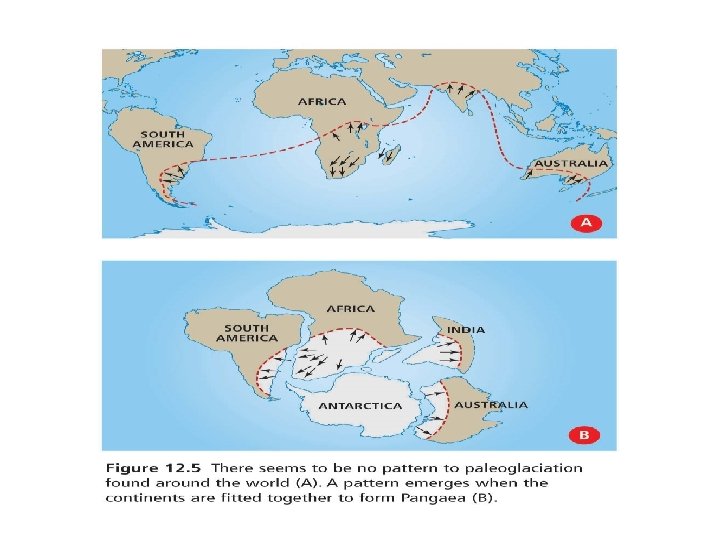 4. Climatic evidence for continental drift. Glacier evidence like U shaped valleys and rock markings in areas that are now tropical. If the supercontinent was joined and closer to the south pole, this makes sense that India, Africa, South America could have had glaciers. Coal deposits in Antarctica. Again supporting that it was once near a warmer climate area.