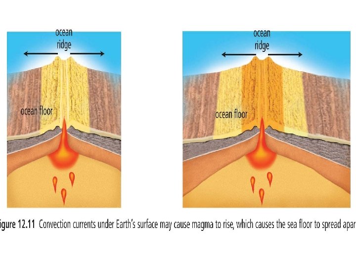 22. Define sea floor spreading. The process in which magma rises to the Earth’s surface at spreading ridges and as it continues to rise, pushes older rock aside.