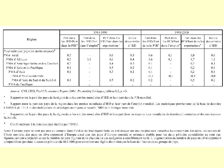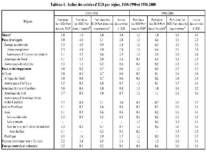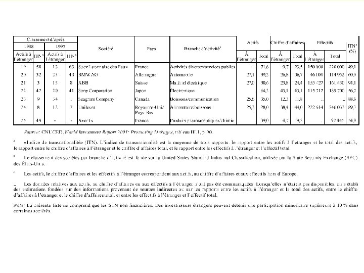 Quelques caractéristiques (CNUCED, WIR 2001) : 1. Développement important : Le taux de croissance de l’IED : 18% en 2000 1300 miliards de $. Plus de 60 000 EMN (44 508 en 1997 (WIR 1997)) Contrôlant au moins 800 000 filiales à l’étranger (276 659 en 1997 (WIR 1997)) 2. Sujettes à de nombreuses critiques 3. (voir infra sous-section 3)