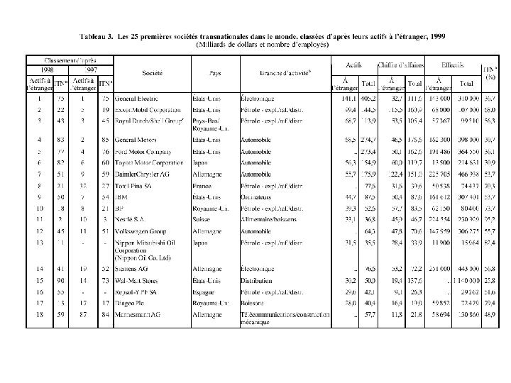 3. Les critiques envers les EMN Ø Syndicats des pays hôtes, ONG, … : ü Importation de technologies inappropriées (PVD) ü Concurrence des entreprises locales (PI et PVD) Ø Syndicats des pays d’origine : ü Réduction de l’emploi domestique ü Exportation de technologies et de capitaux