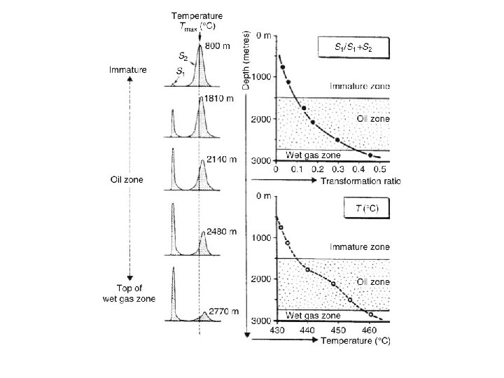 �석유 발생 잠재성 S 1+S 2의 양(kg/ton, mg/g, ppm)에 따라 S 1 +S 2 (ppm) 0 -2 2 -6 6 -20 20 -60{-100+ (oil shale)} Source rock potential poor fair good Very good Type of product Gas, light oil Geologic examples Duala Basin, Gulf coast Tertiary sed. , Pierre sh. , Mancos Oil & gas Various proportion Phosphoria, Mowry sh. , Niobrora Phosphoria, Toartian sh. , Paris Tertiary Green river, Bakken/ Exshad, Minnolusa, Cretaceous Persian Gulf Coast