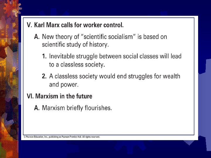 Karl Marx • A German philosopher who in the 1840 s formulated a new theory “scientific socialism”. • Teamed up with another German philosopher Friedrich Engles (whose father owned an English Textile factory) and wrote “The