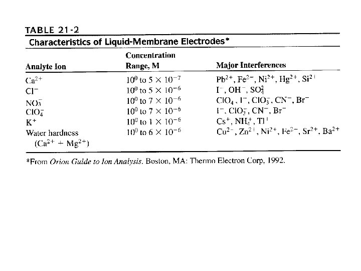 # The asymmetry potential When a identical solutions and reference electrode are placed on two sides of glass membrane : Boundary potential = 0. ☞ the boundary potential : change gradually with time ☞ Source of asymmetry potential : obscure * difference in strain on the two surfaces of the membrane imparted during manufacture * mechanical abrasion on the outer surface during use * chemical etching of the outer surfaces ☞ To eliminate the bias caused by asymmetry potential : all membrane electrodes must calibrated one or more standard analyte solutions
