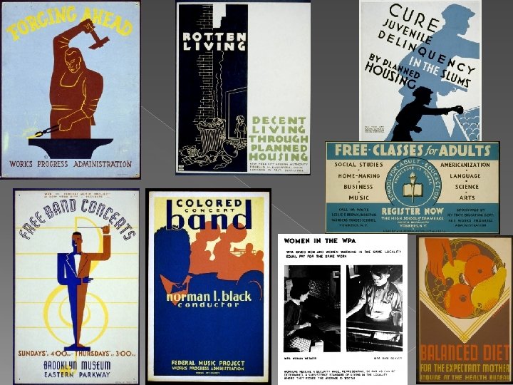 UNEMPLOYMENT - still a major problem FDR like Hoover was wary of gov't handouts - he wanted people to earn their keep so gov't agencies were created temporarily - to address the unemp. problem CIVILIAN CONSERVATION CORPS (CCC) - in 1933 - set to establish work for young men (18 -25) in areas of reforestation, soil conservation, flood control, road construction - also took them out of urban labour markets - but Blacks not permitted to enrol