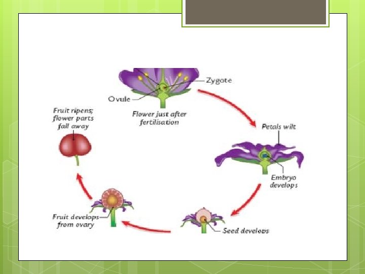 5. Development a. Fertilization produces a zygote which grows into an embryo b. The embryo becomes enclosed in a seed