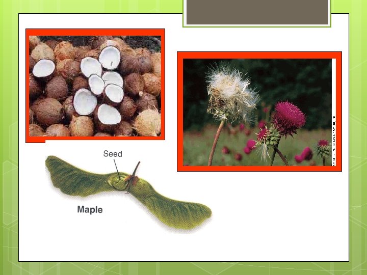 B. Seed Dispersal 1. Dispersal by Animals- Seeds dispersed by animals are typically contained in fleshy, nutritious fruits.