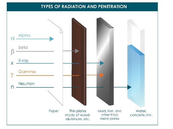 What happens during nuclear radiation? -Unstable nuclei want to become stable. -They emit energy and particles to achieve stability. -Three types of radiation: alpha a, beta b, and gamma g.