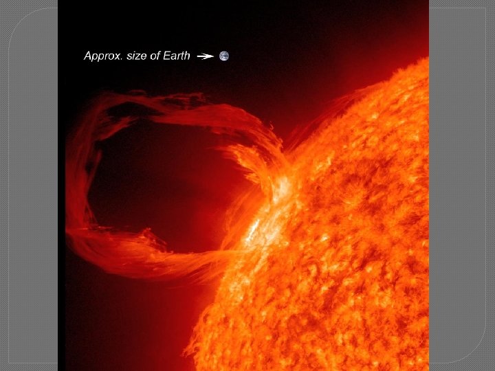 • 2. Sunspots are related to intense magnetic fields �a. Magnetic fields may cause prominences – huge, arching gas columns �b. Violent eruptions near a sunspot are called solar flares