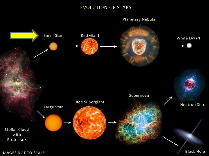 • 3. A white dwarf forms from the giant star �a. Helium (He) is exhausted and outer layers escape into space �b. Core contracts into hot, dense, small star Small star