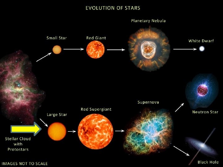 � C. Evolution of stars • 1. A nebula contracts and breaks apart from the instability caused by gravity �a. Temperatures in each nebula chunk increase as particles move closer together �b. At 10 million K fusion begins and energy from a new star radiates into space Image from Hubble space telescope