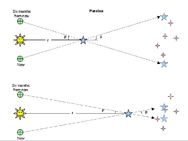 � C. Space measurement • 1. Astronomers measure a star’s parallax – shift in its position when viewed from two different angles. Demonstrate parallax shift by holding your hand out in front of you with your thumb sticking up (each of your eyes are in 2 different positions) Close one eye and then switch.