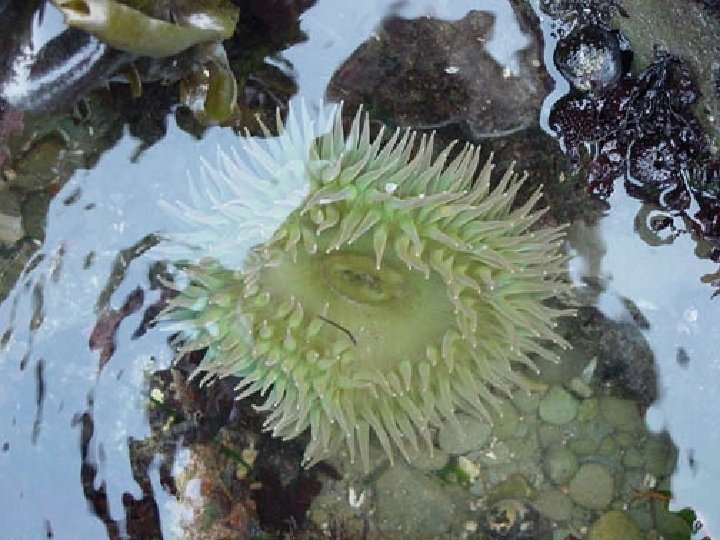 Anthozoa (class) ®Only polyp ®Sea anemones are polyps along rocks. ®Clown fish swim around in their tentacles. The clown fish is protected from the tentacles by a chemical in their skin that doesn’t allow the nematocyst to fire. ®Video Clip